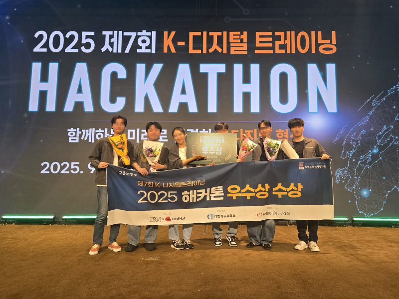 제7회 K-디지털 트레이닝 해커톤 대회 '우수상' 수상! 안녕하세요. 고용노동부와 한국직업능력심사평가원(KSQA)이 주최한 제 7회 해커톤 대회에서 ' [IBM x RedHat]AI Transformation AX Academy 2기 '훈련생(김ㅇ윤, 김ㅇ연, 김ㅇ비, 이ㅇ민, 이ㅇ우, 황ㅇ연)들이 우수상을 수상하였습니다. 수상을 진심으로 축하드리며,이들의 열정과 도전이 더 많은 훈련생분들에게 긍정적인 영향을 미치길 바랍니다. 감사합니다.