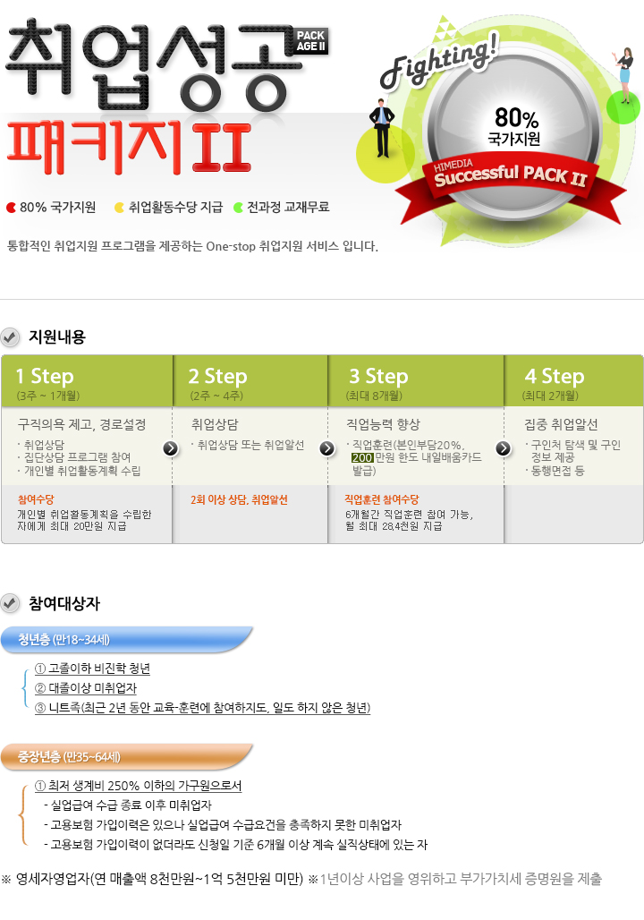 청년층(만18~29세, 군필자는 만32세까지), 중장년층(만30~64세) 무료교육 및 취업지원