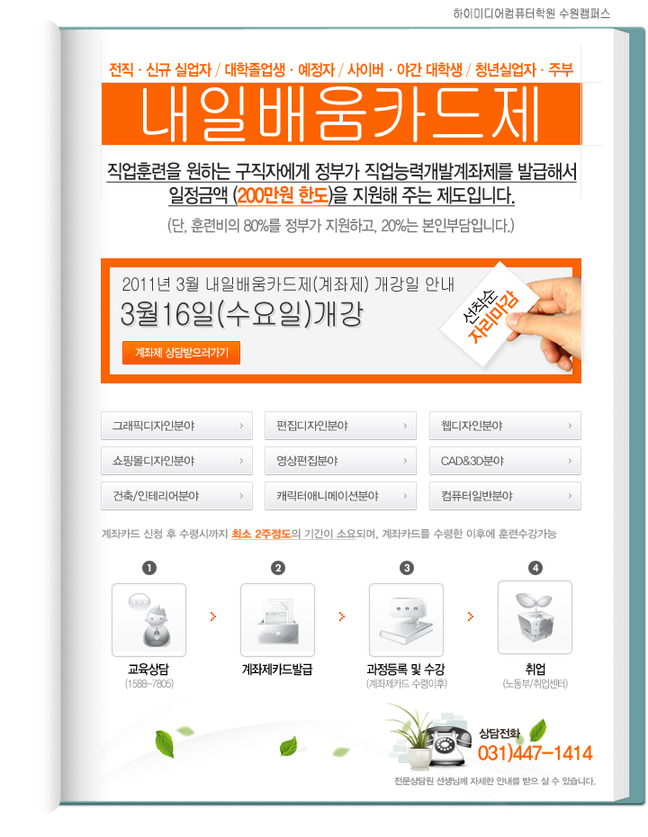 [계좌제개강] 국비지원 200만원 3월 내일배움카드제 개강안내