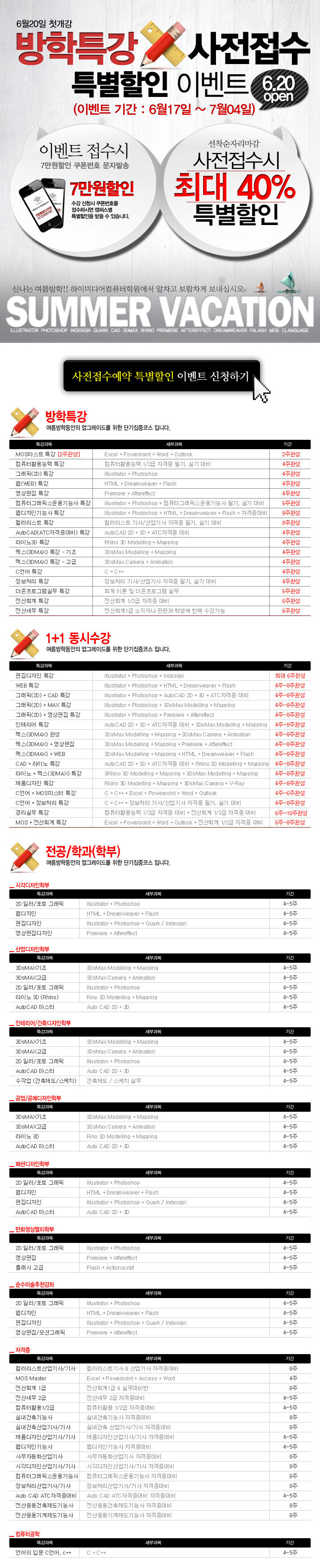 [사전접수이벤트] 2011년 여름방학특강