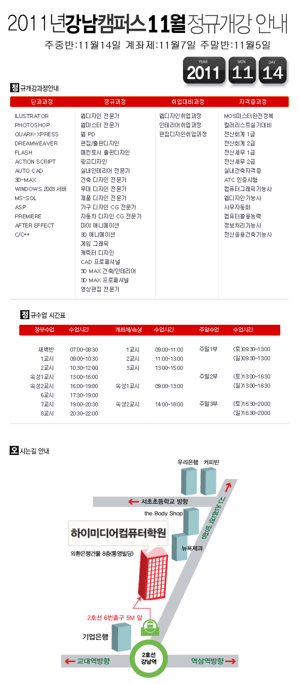 [정규개강] 2011년 11월 정규개강안내