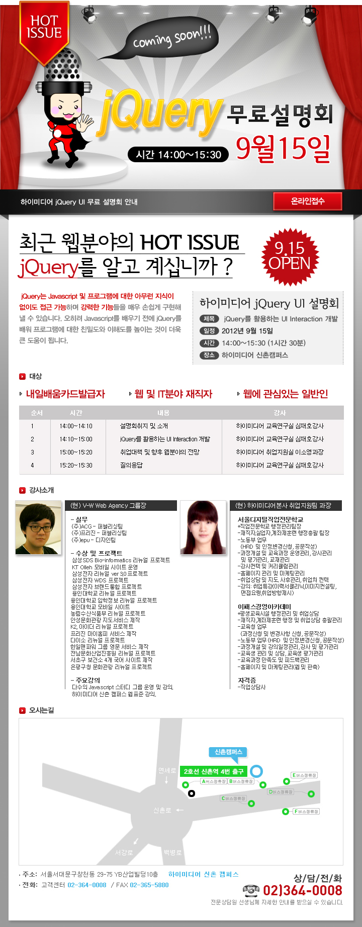 지점을 선택하세요 강남 강남AI 종로 신촌 구로 천호 노원 안양 안산 성남 구리 일산 김포 동탄 남양주 강릉 교육과정을 선택하세요 웹디자인·웹퍼블리셔 편집디자인·영상편집 전산세무회계·ERP IT·프로그래밍 컴퓨터활용·OA 건축·기계설계 실업자 그래픽자격 GTQ(포토샵,일러스트) 및 웹 상세페이지 제작 웹디자인기능사(HTML5, CSS3, Javascript, jQuery) 자격증 취득 과정 재직자 웹퍼블리셔 기초(HTML,CSS) 교육과정선택(5개과정만 문의가능) 지점을 선택해주세요 내용을 작성해주세요 이 름 휴대폰 번호 이메일 주소 문의하실 내용 개인정보 수집동의 [개인정보수집및 이용동의 안내]