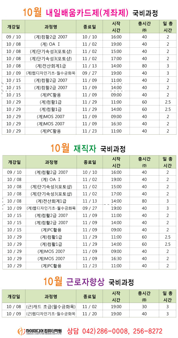 [정규개강]2012년 10월 개강일정입니다.(대전캠퍼스)