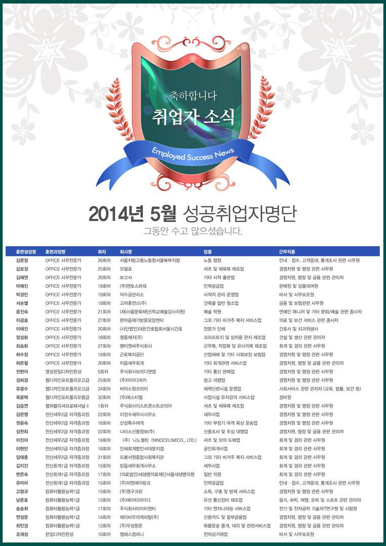 [성공취업] 2014년 5월 성공취업자 소식