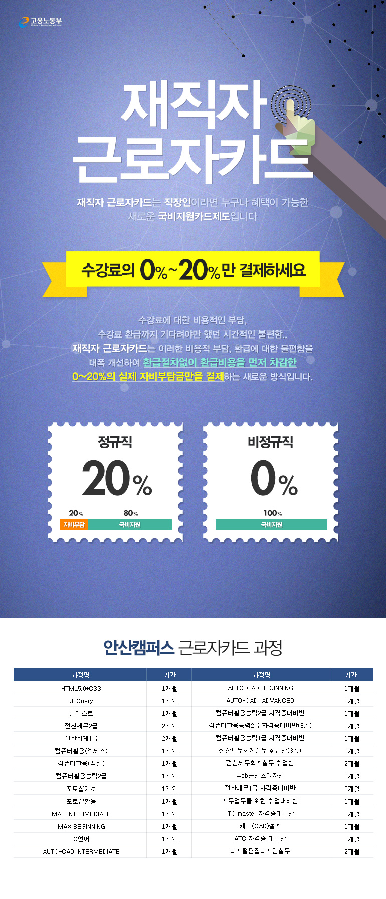 수강료 걱정없는 <재직자 근로자카드> 과정안내
