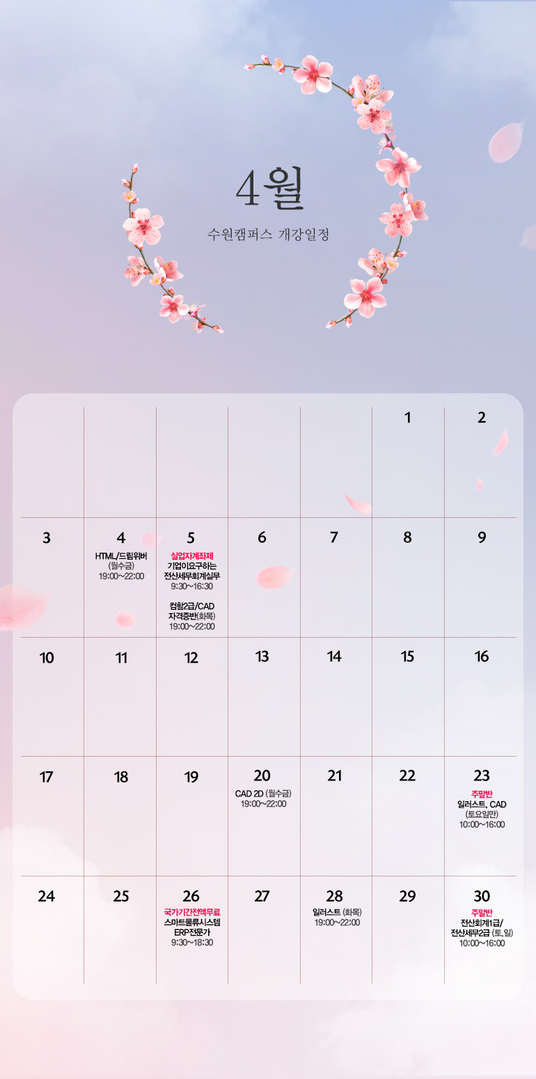 [수원캠퍼스]4월 개강일정