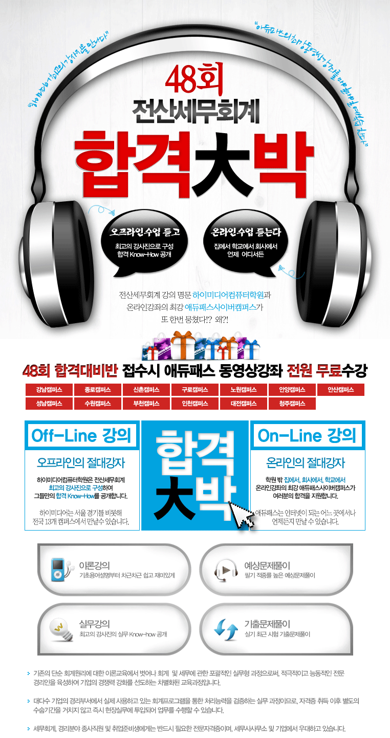 전산세무회계 강의 명문 하이미디어컴퓨터학원과 온라인강좌의 최강 애듀패스사이버캠퍼스가 또 한번 뭉쳤다!?  왜?!